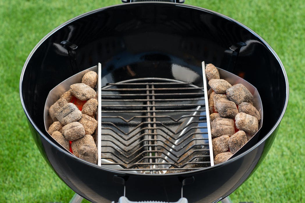 En mode grillade on peux disposer notre charbon environ comme bon nous semble puisque nous n’aurons pas besoin de zone indirecte. On peux soit disposer nos deux paniers à charbon au centre du BBQ ou simplement placer le charbon directement sur la grille.