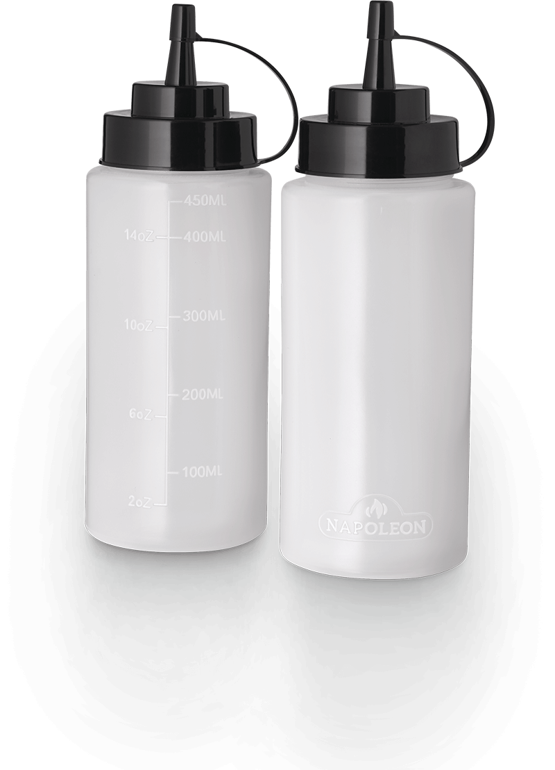 Cet ensemble de deux bouteilles souples de 16 oz sans BPA est parfait pour vos grillades sur la plancha et vos condiments préférés. Préparez la plancha avec une huile savoureuse, puis nettoyez-la facilement avec un jet d’eau entre chaque cuisson d’aliments ou à la fin de la cuisson. Que vous parfumiez vos mets avec des huiles et de l’eau, ou que vous rehaussiez leur goût avec des marinades, des sauces et des condiments, ces bouteilles sont un excellent complément à votre arsenal de grillades.