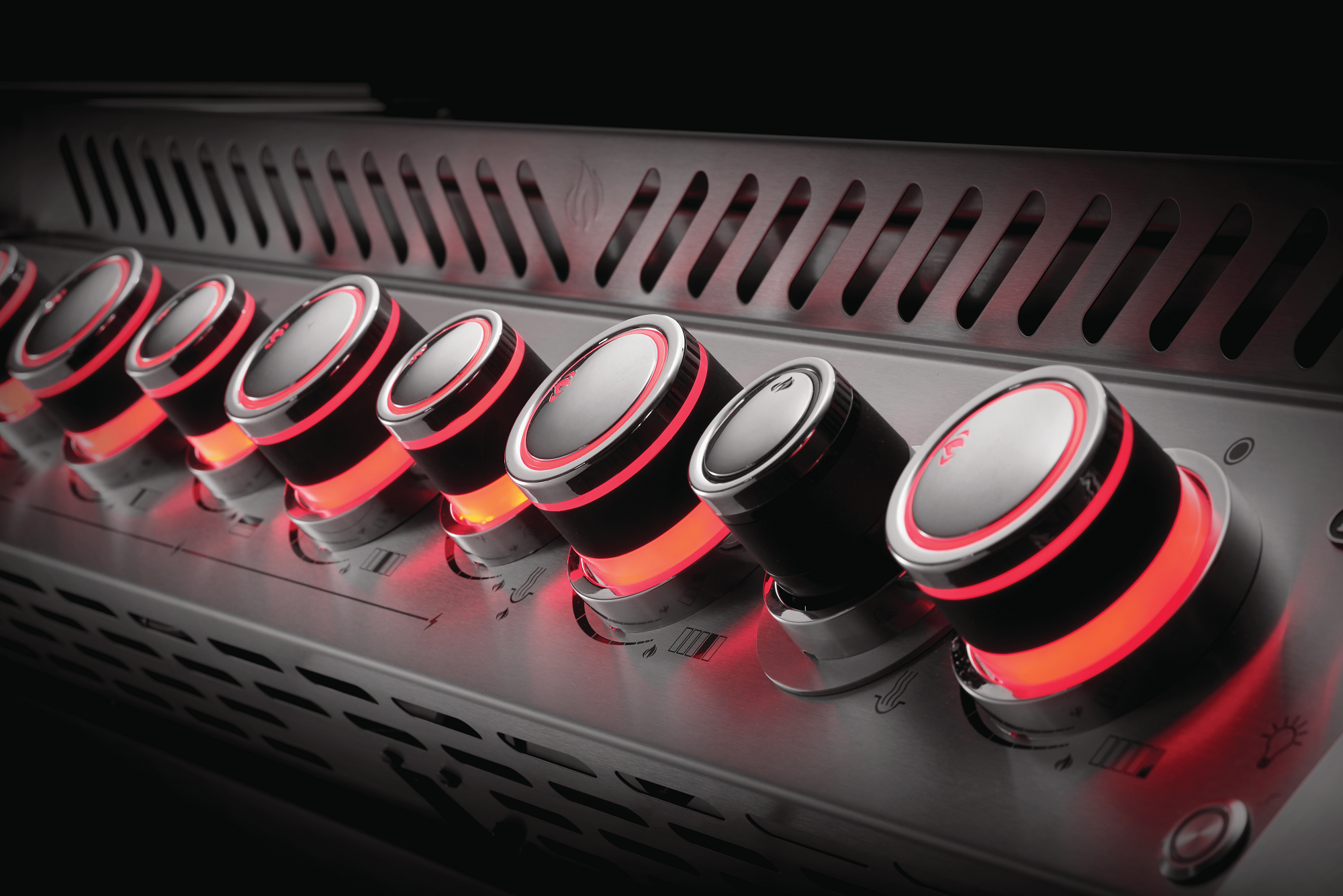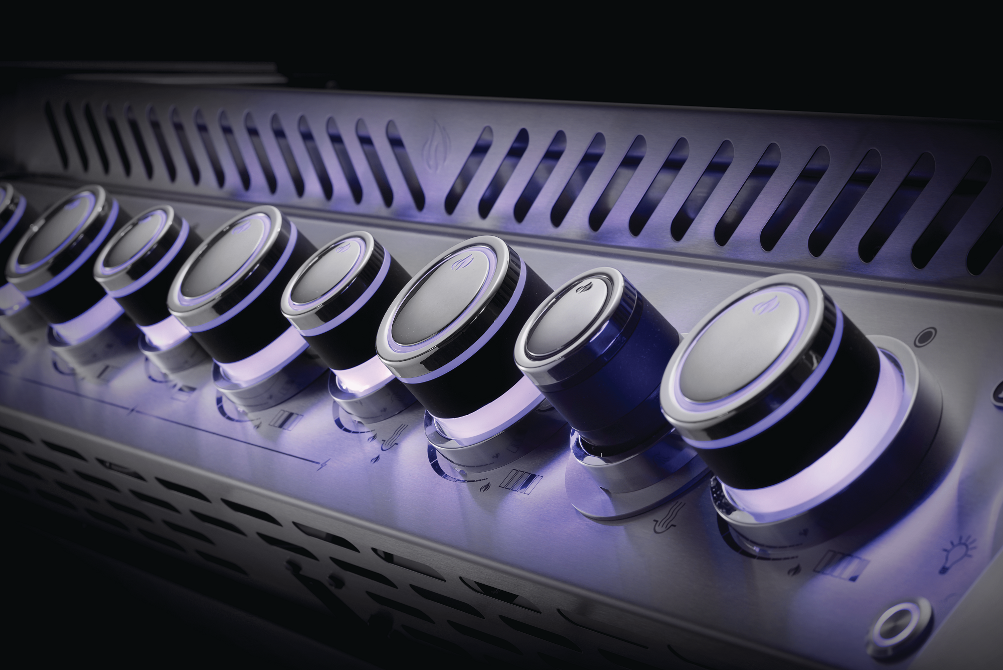 Les boutons de commande LED Spectrum NIGHT LIGHT™ avec SafetyGlow ajoutent une touche de style et facilitent la lecture des réglages en soirée, changeant de couleur ou signalant lorsque le gaz est allumé pour plus de sécurité. De plus, les lumières intérieures du grill permettent de voir clairement votre surface de cuisson même après le coucher du soleil.
