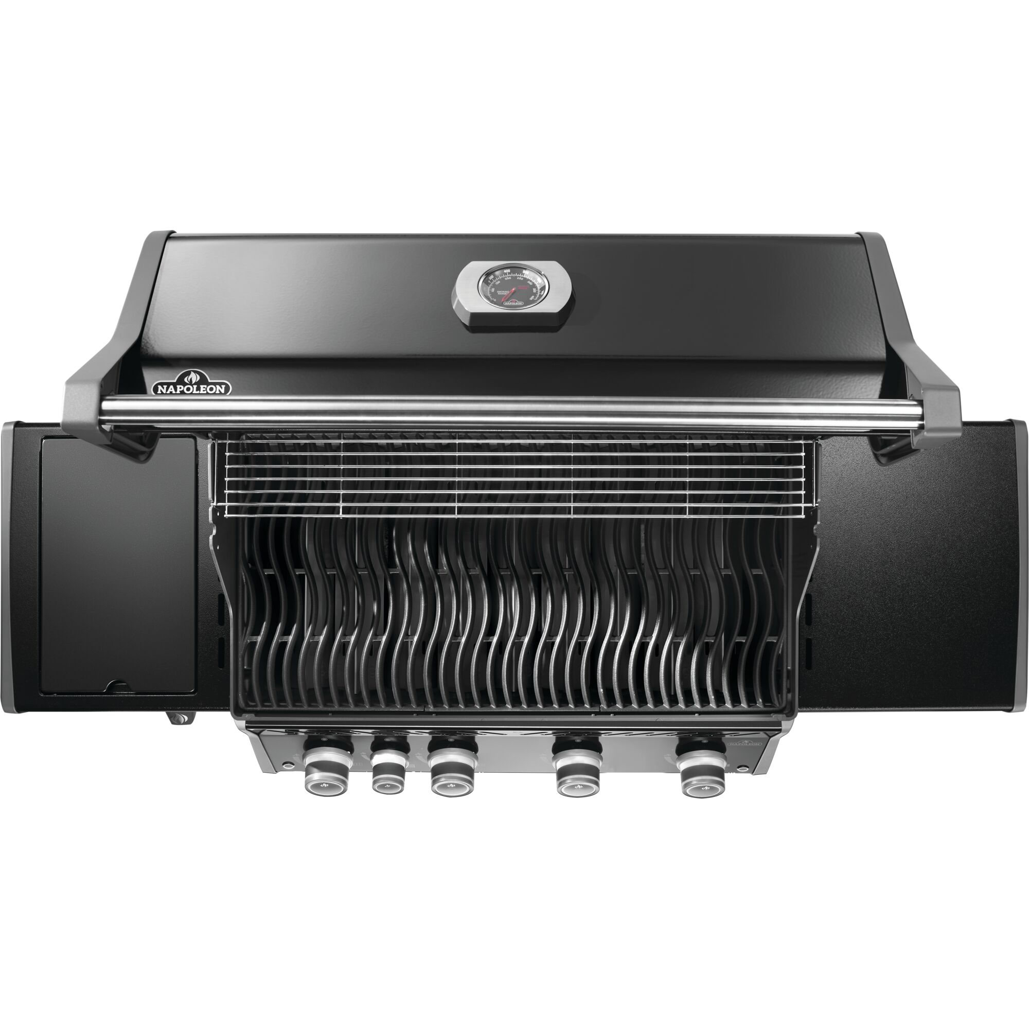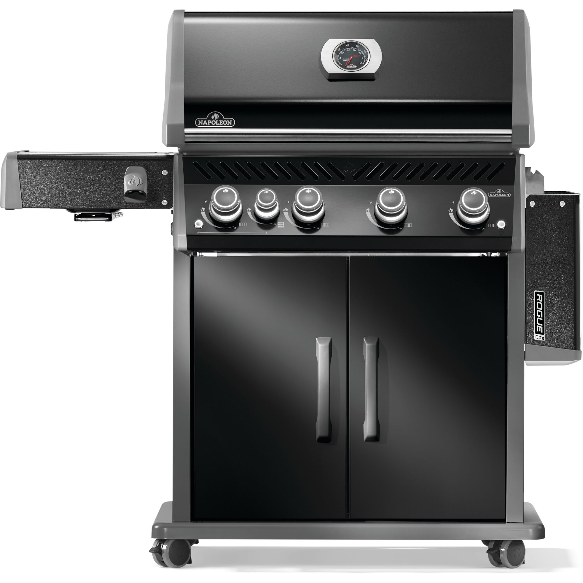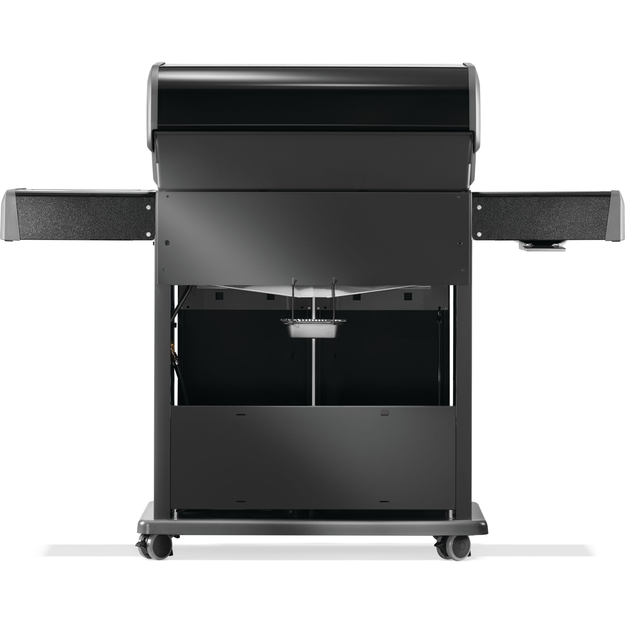 Fini durable : Le couvercle et les portes en porcelaine émaillée noire durable, et le panneau de commande et les tablettes latérales avec revêtement de peinture en poudre noire résistent à toutes les intempéries et aux traces de doigts.