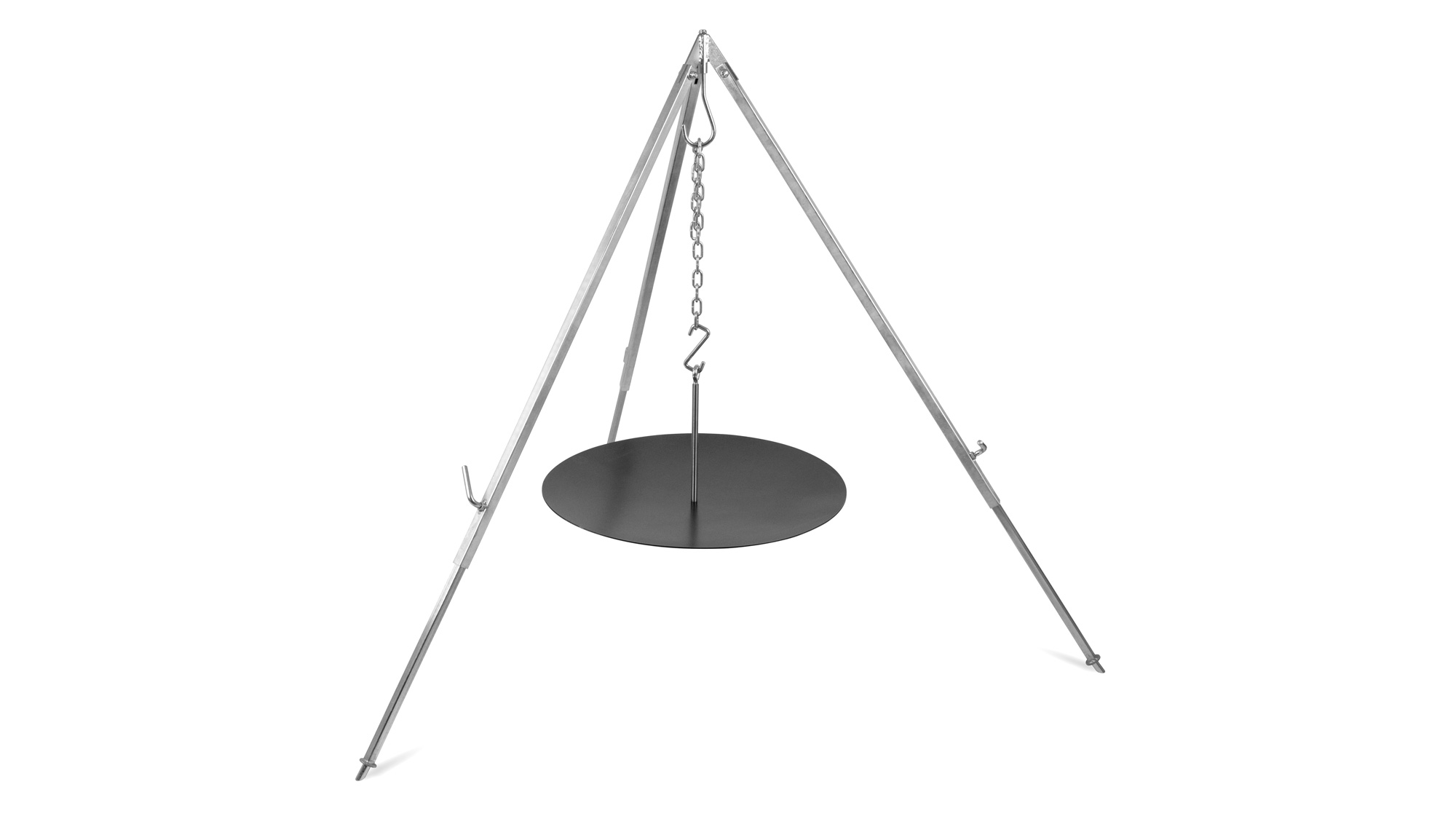 Combiné au trépied Petromax, elle garantit de savoureux résultats de cuisson : la plaque de cuisson et brasero, qui est simplement et directement accrochée au crochet du trépied à l’aide d’une tige filetée à œillet, offre un grand espace pour la viande, les légumes et autres aliments. La plaque en acier fabriquée en Allemagne atteint rapidement la bonne température sur le feu et est prête à l’emploi en peu de temps. Selon le principe éprouvé des plaques de cuisson et brasero Petromax, les aliments conservent leur jus. La préparation de filets ou de galettes de viande particulièrement moelleux, de pommes de terre sautées et d’œuf sur le plat est tout aussi réussie que les légumes grillés variés cuisant dans leur propre jus. Grâce aux différentes zones de chaleur, vous pouvez tenir les pains à hamburger ou votre viande au chaud sur le bord, tandis que la viande est grillée au centre de la plaque. Une chaîne permet de régler la distance de la plaque par rapport au feu, ce qui fait du trépied avec la plaque de cuisson et brasero une puissante table de cuisson d’extérieur pour chaque occasion.