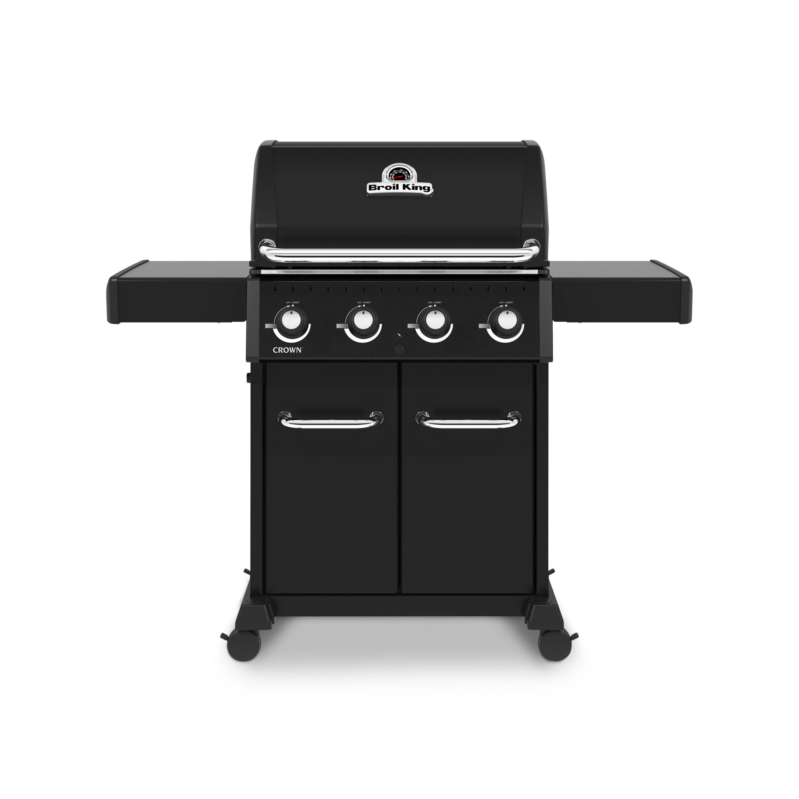 Le barbecue Broil King Crown 420 Pro est un barbecue idéal pour les petites familles, avec ses 460 pouces carrés de surface de cuisson. Sa grille de cuisson est en acier inoxydable de 8mm et sa grille de réchaud est en acier recouvert de porcelaine. Sa puissance de 40 000 Btu est répartie par 4 brûleurs en acier inoxydable garantis 10 ans. Ses tablettes se rabattent pour maximiser votre espace. Son couvercle en acier recouvert d’une porcelaine noire est facile d’entretien et garde bien sa chaleur. Avec le Broil King Crown 420 Pro vous combinerez performances et durabilité. Fonctionne à gaz propane.