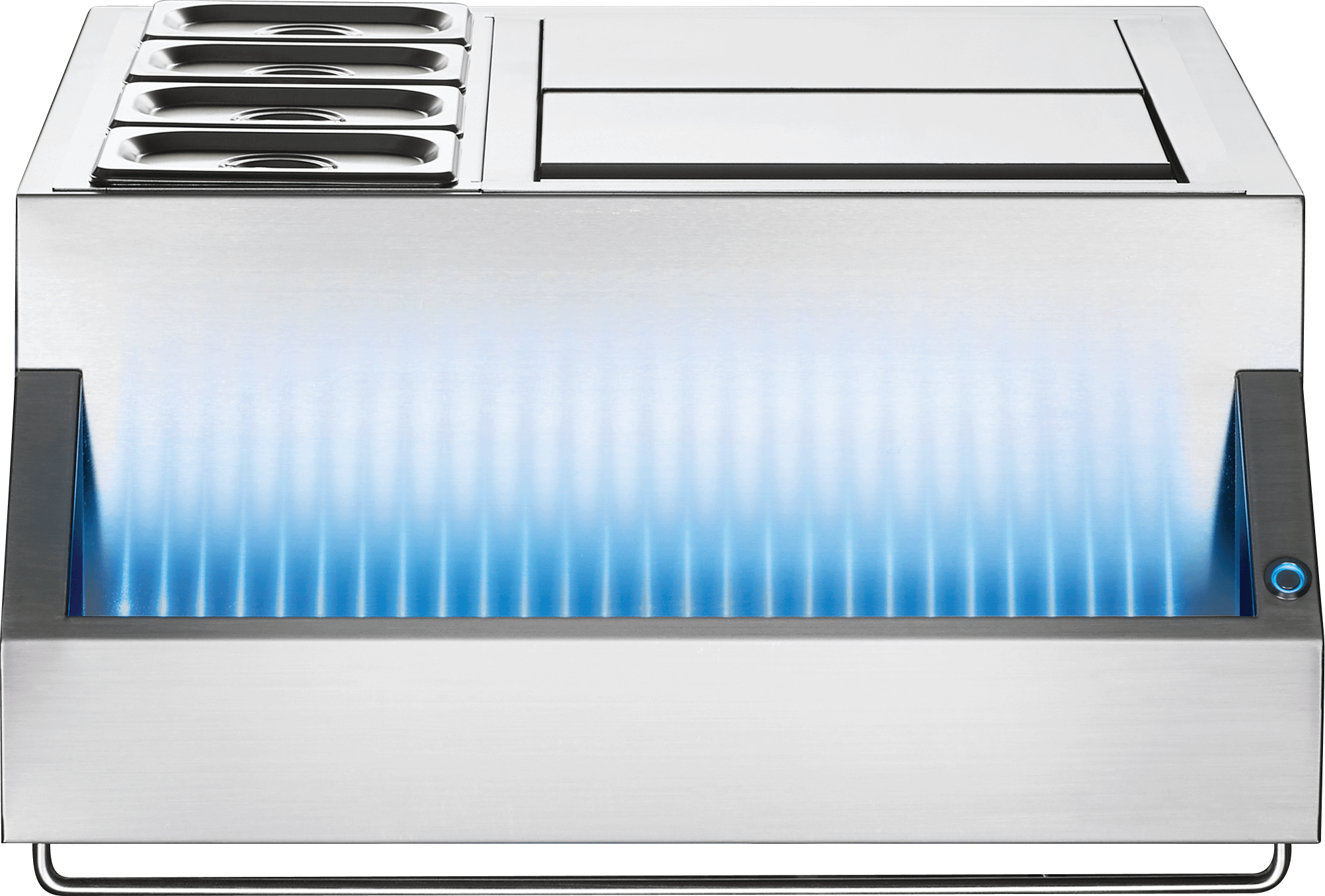 Le centre de breuvage multifonctionnel Napoléon en acier inoxydable est composé de bassin entièrement isolé pour garder les 4 espaces de 1000 ml froid ainsi qu’un contenant en acier inoxydable ayant une capacité de 8 litres. Le centre de breuvage multifonctionnel de Napoléon Bi-2418-BEV est muni du système DEL Wave rétro-éclairé avec des lumières DEL.