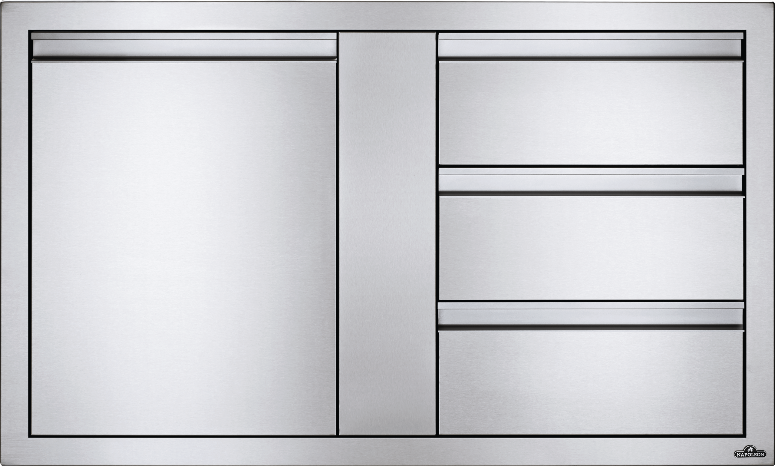 Le combo de porte et trois tiroirs BI-3624-1D3DR Napoléon en acier inoxydable vous offre un système de porte et tiroirs à fermeture amortie. De plus, afin d’avoir une belle installation le combo de porte et trois tiroirs de Napoléon est composé d’une finition sans joint.