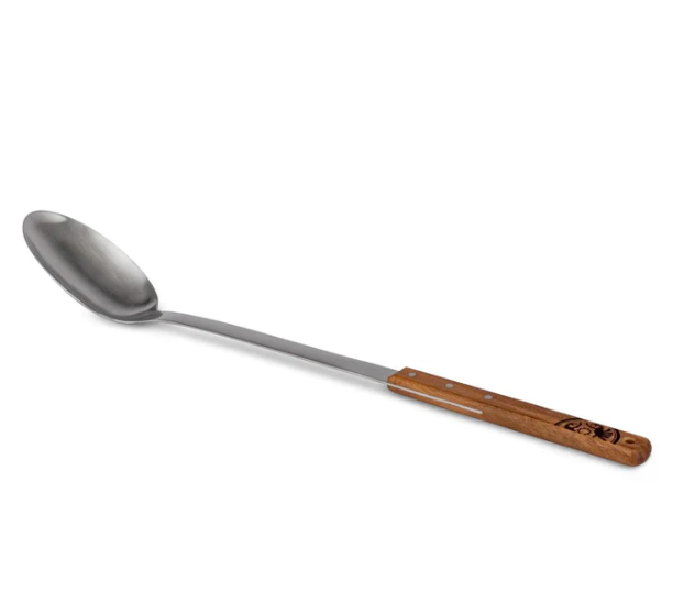 Grâce au manche en bois véritable, la cuillère à servir tient parfaitement dans la main et est ton aide pratique pour distribuer des plats de viande chauds, des soufflés, des légumes, des accompagnements consistants. Le manche assure une portée adéquate lorsque tu sers directement dans les bols de ton équipe de campeurs en passant par-dessus la plaque de cuisson.