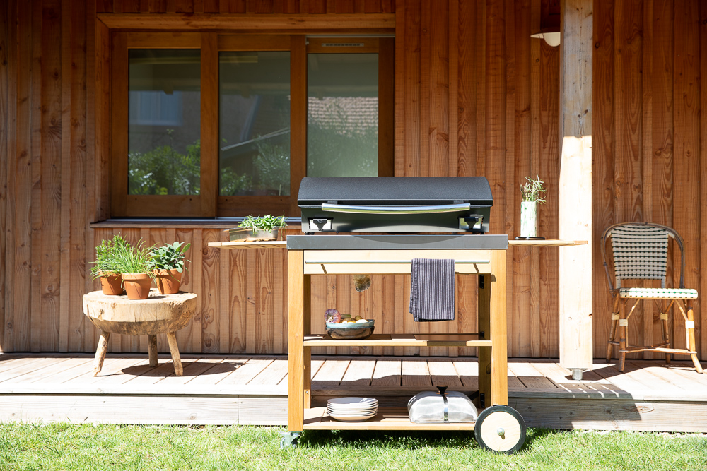 Sa finition gris cargo apporte une touche élégante et contemporaine qui s’intègre parfaitement aux cuisines extérieures modernes.