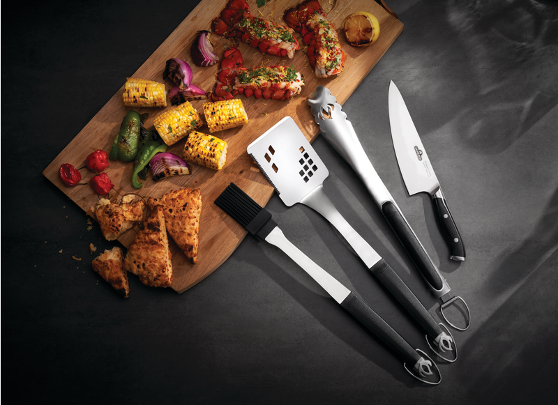 Cet ensemble d’ustensiles de Napoleon en acier inoxydable est un ensemble idéal pour commencer la saison de barbecue! Il est composé d’une spatule, d’une pince, d’un couteau de chef et d’un pinceau en silicone.