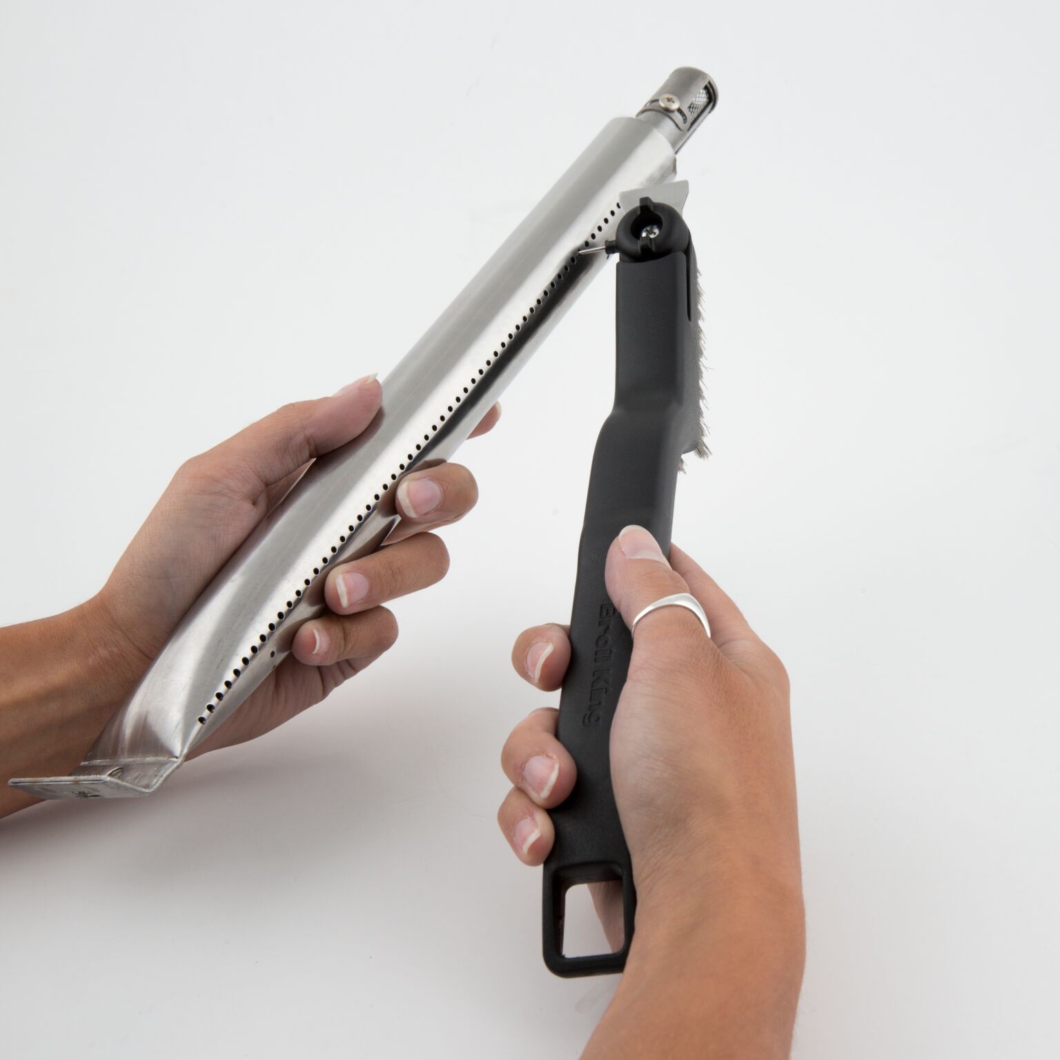 La santé du brûleur est l’élément le plus important de la performance de cuisson et même de la chaleur. Utilisez la brosse venturi pour nettoyer l’intérieur des brûleurs. Les araignées adorent construire des nids à l’intérieur de ceux-ci. La brosse de nettoyage est la façon la plus simple de nettoyer les brûleurs, la boîte de collecteur ou tout autre espace difficile à atteindre. La brosse de finition dispose d’une pointe d’aiguille pour nettoyer les trous de tube de brûleur obstrués.