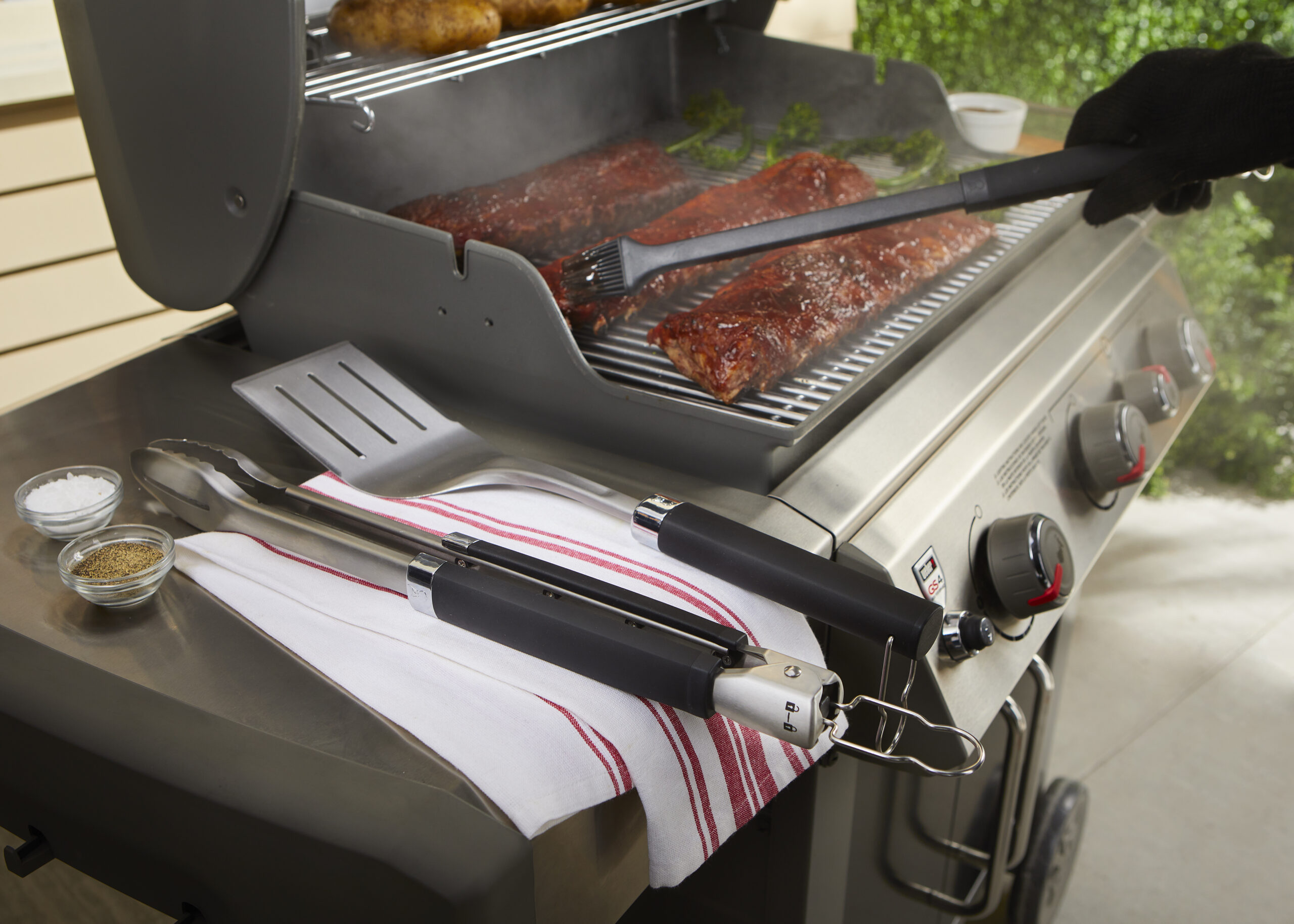 • Comprend des pinces à gril de précision, une spatule et une brosse à badigeonner