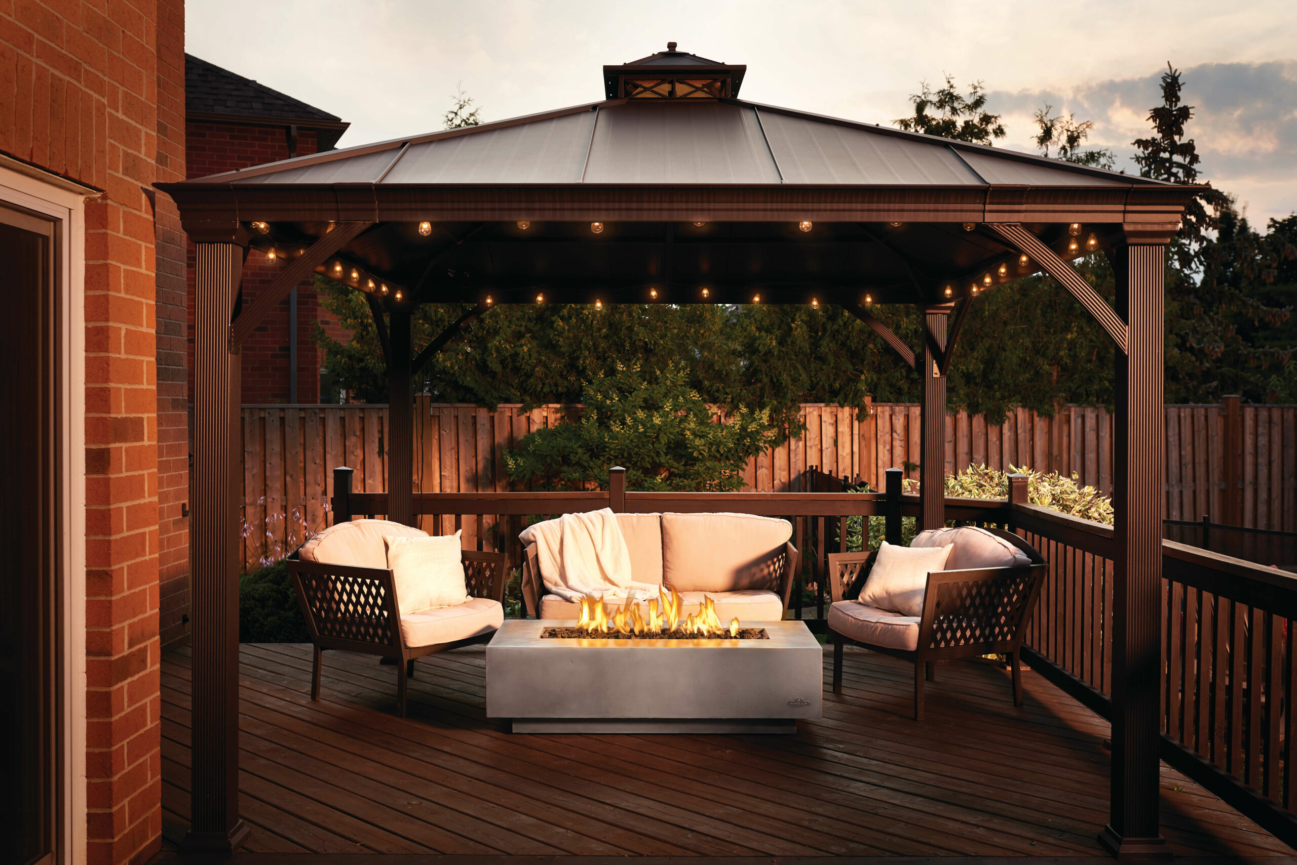 La table est en fonte d’aluminium qui ressemble à du béton moulé. Le brûleur est en acier inoxydable de qualité supérieure avec pierre de lave. Ensemble de conversion au gaz naturel vendu séparément. Housse incluse.