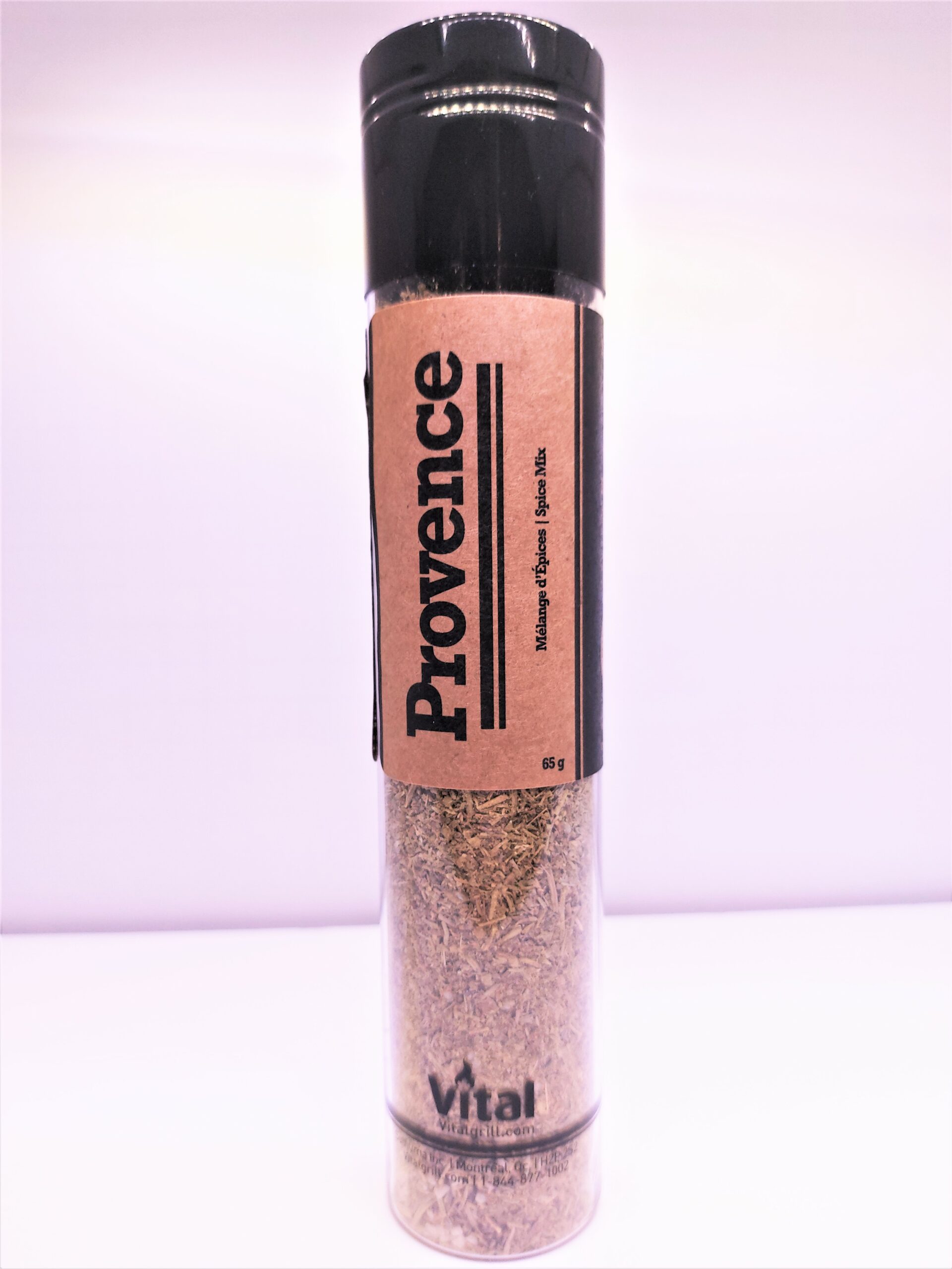 Réchauffez vos sens aux doux parfums du sud de la France. Le mélange Provence de Vital fait honneur à la recette traditionnelle Française dans toute sa délicatesse en combinant le basilic, la marjolaine, le thym et le romarin en y ajoutant une pointe de sel de mer. Ce mélange classique et versatile saura accompagner vos grillades, mijotés, légumes et même vos salades d’été composées préférées. Bon appétit!