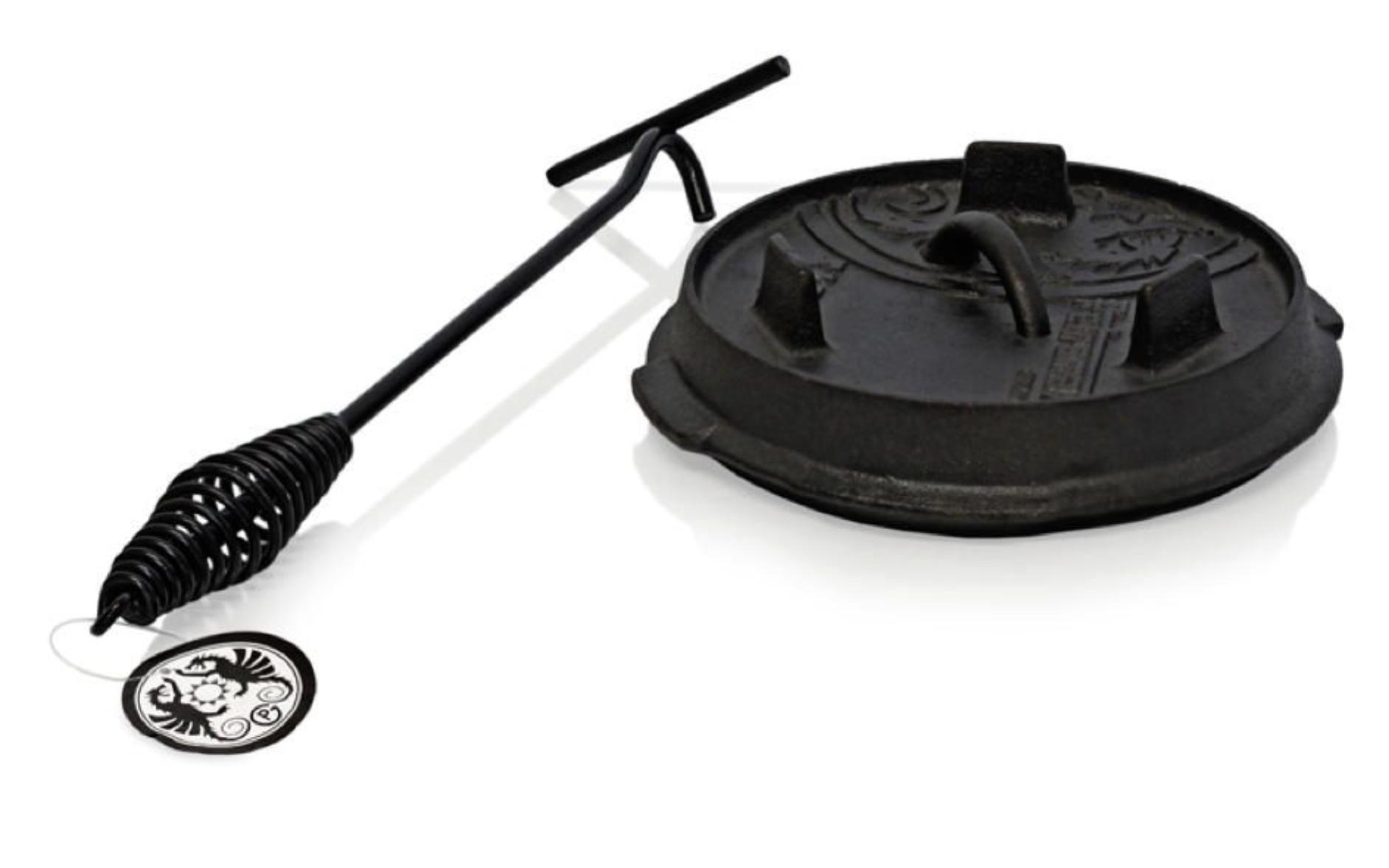 Le levage de couvercle étant universel, il peut donc être utilisé pour toutes les marmites en fonte. Il peut également servir à soulever tout type d’objets brûlants tel que le gril de l’Atago Petromax ou pour les feux de cheminée. L’anneau situé à l’extrémité du levage de couvercle permet en outre d’accrocher facilement le levage de couvercle.