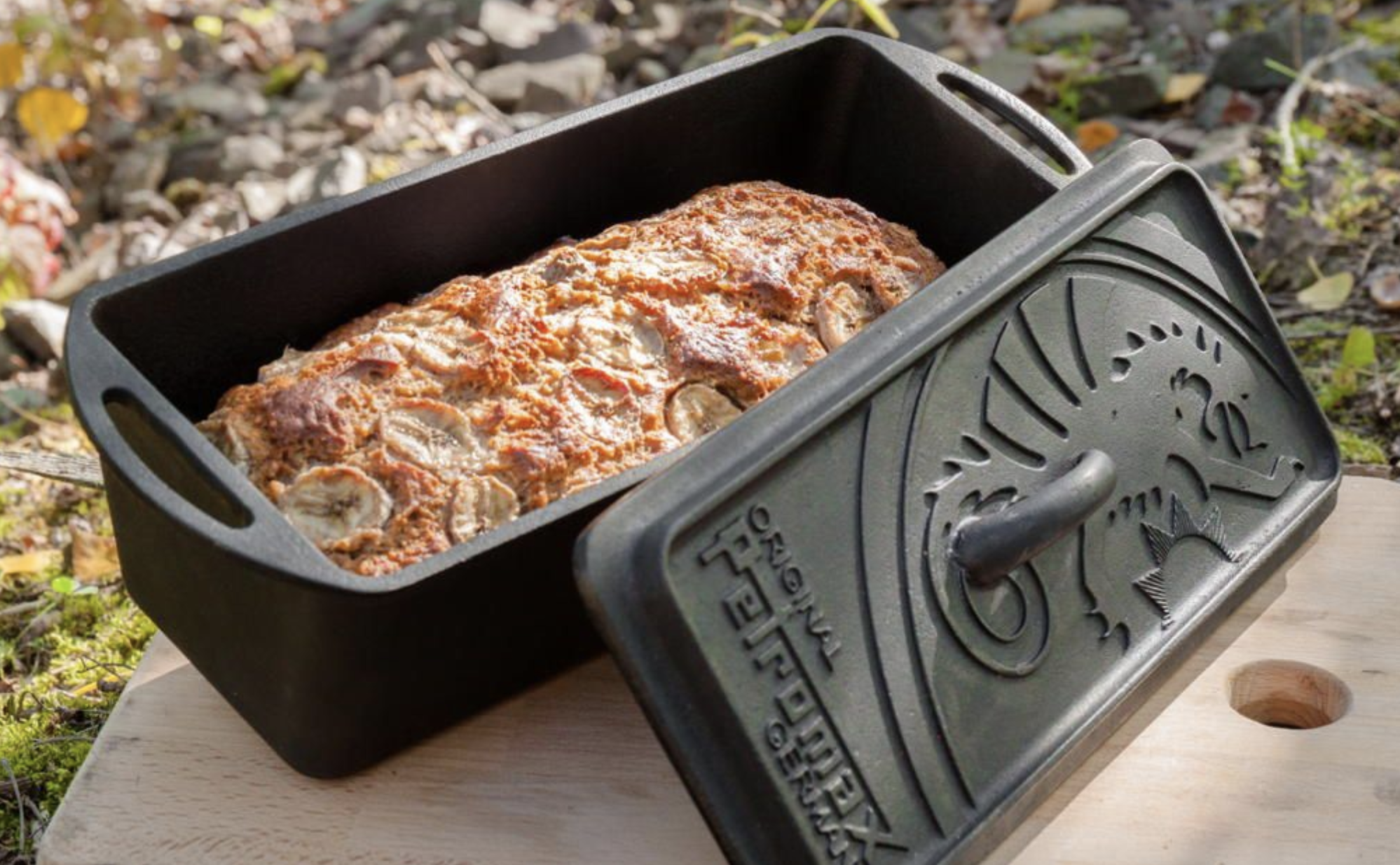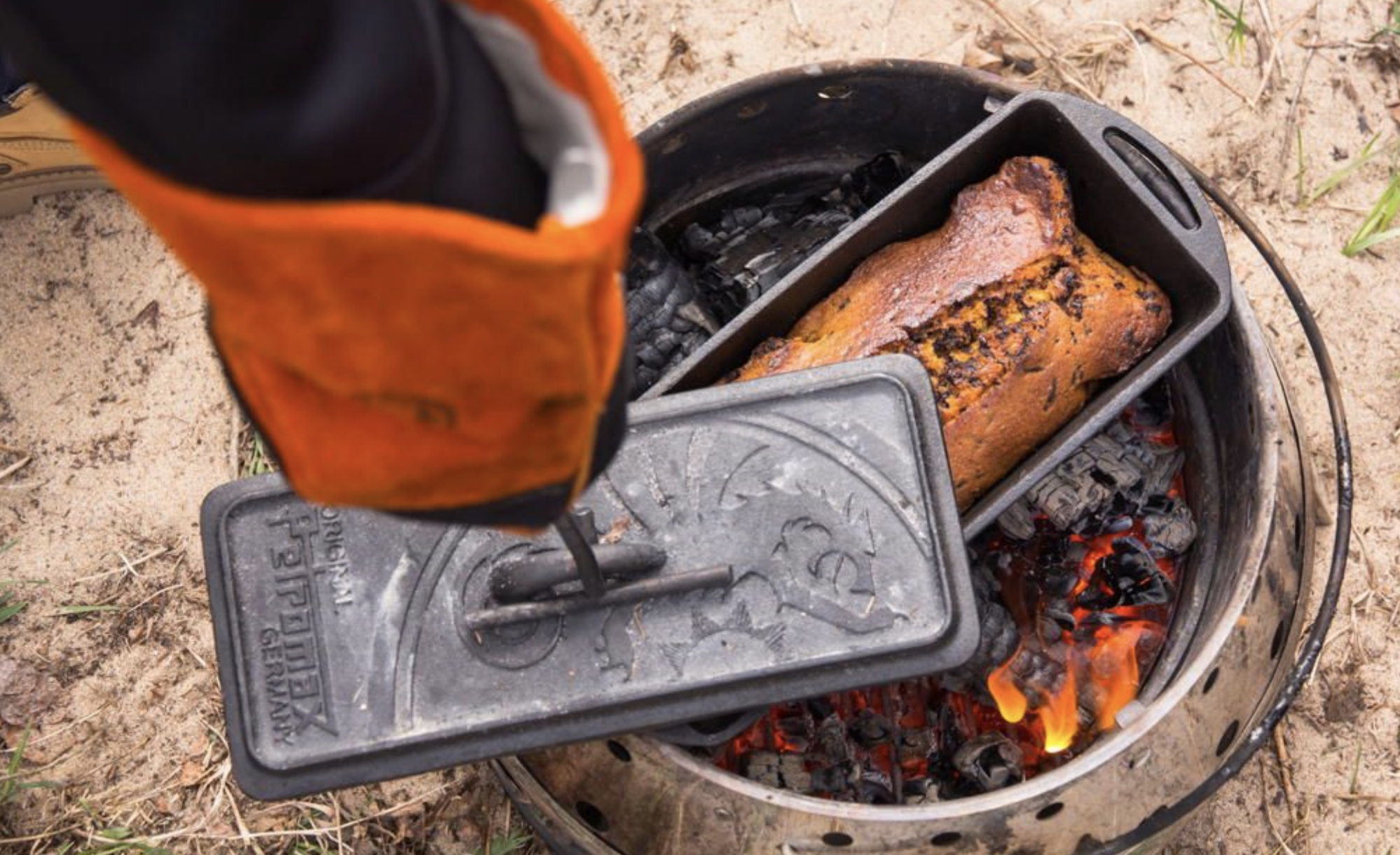 Fabriqué en fonte, le moule à pain répartit et conserve extrêmement bien la chaleur. Peu importe que tu l’utilises sur un feu ouvert ou que tu déposes des briquettes sur le couvercle : la chaleur ambiante qui est créée est efficace aussi bien dans un four qu’en plein air. Grâce à ce que l’on appelle le culottage le moule à pain est utilisable de suite.