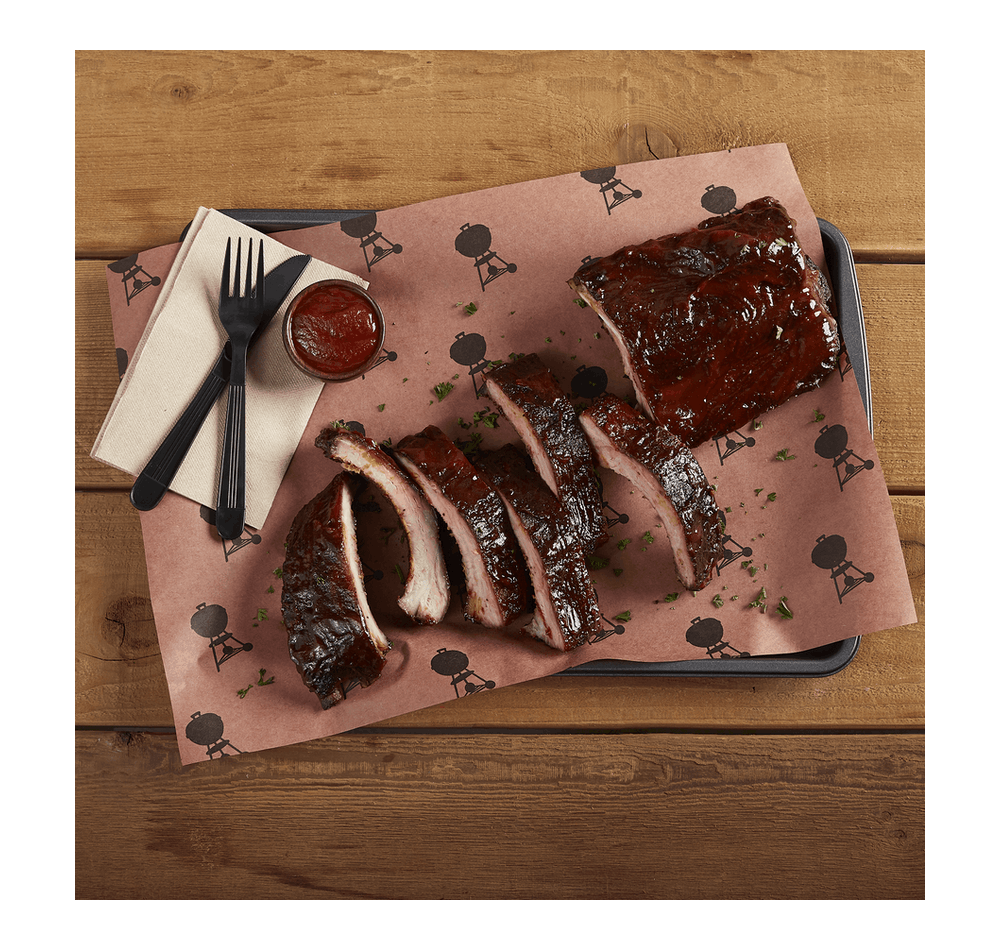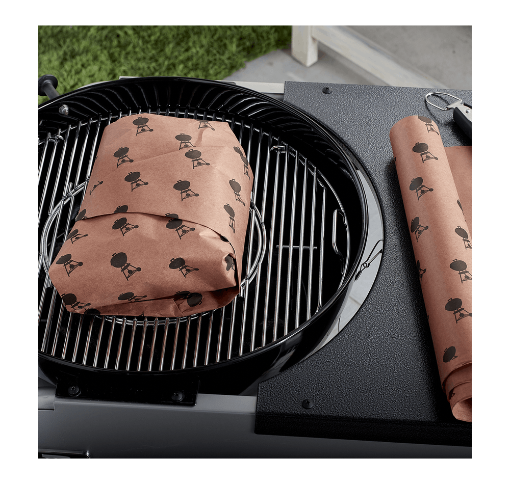 Servez à vos convives une viande tendre et savoureuse avec une croûte parfaite en l’enveloppant dans du papier de boucherie Weber. Le fait d’envelopper la viande vers la fin d’un processus de fumage lent à feu doux aide à retenir l’humidité. Le papier de boucherie Weber est estampillé de motifs de barbecues Weber Kettle pour agrémenter la présentation. 18 » x 150′.