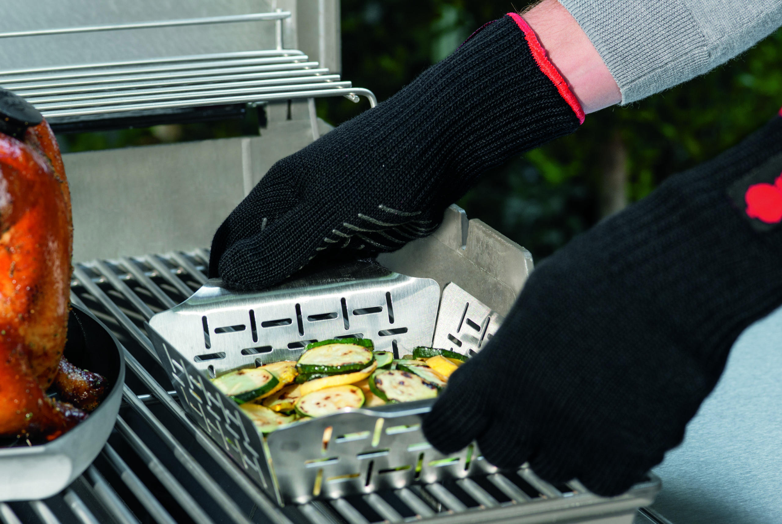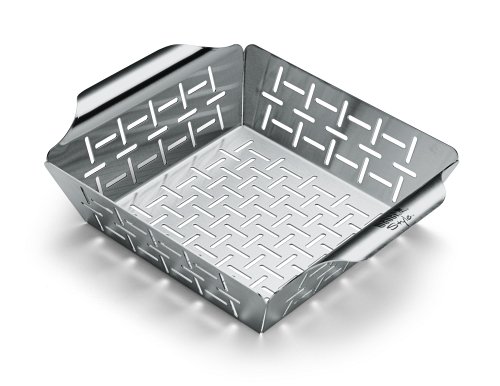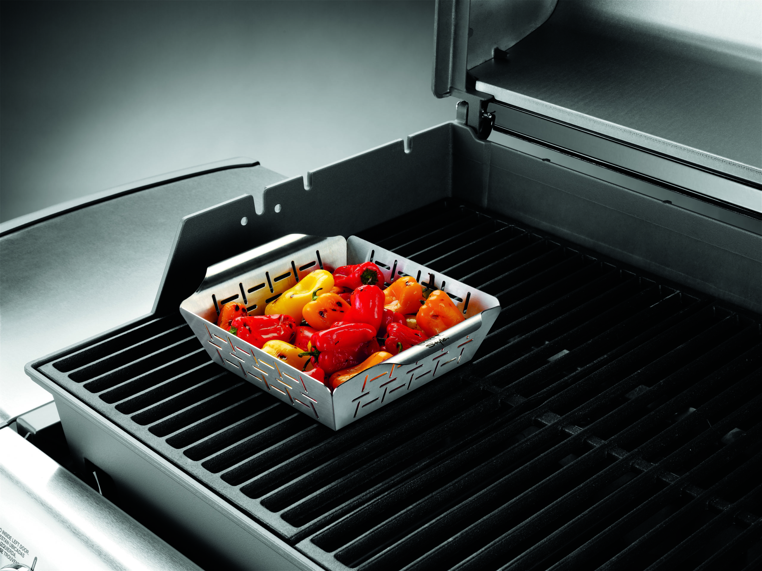 Cet accessoire Weber est un panier à griller Deluxe de petite taille conçu pour faciliter la cuisson des légumes et des petits morceaux d’aliments directement sur le gril. Il s’agit d’un accessoire utile pour accompagner vos grillades, sans que les aliments ne tombent à travers les grilles du barbecue.