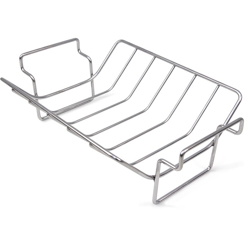 Le support à côtes et à rôtis en acier inoxydable à double usage peut être utilisé debout pour contenir des rôtis et de la volaille ou peut être retourné pour servir de support à côtes efficace.