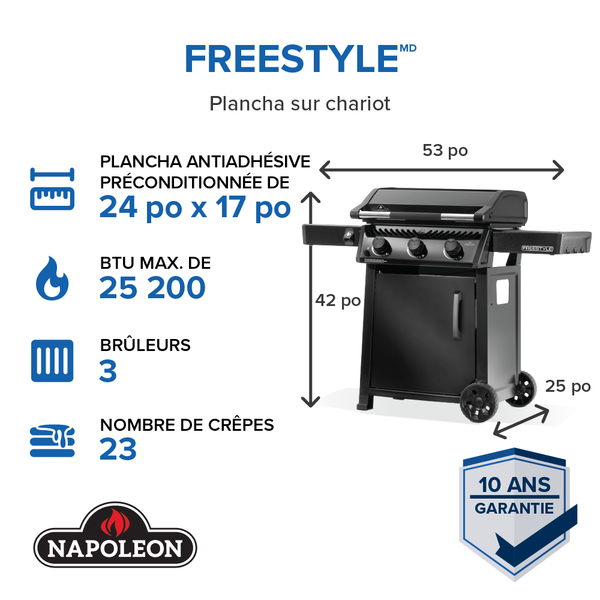 Issue de la gamme Freestyle de Napoleon, cette plancha combine simplicité, efficacité et durabilité.