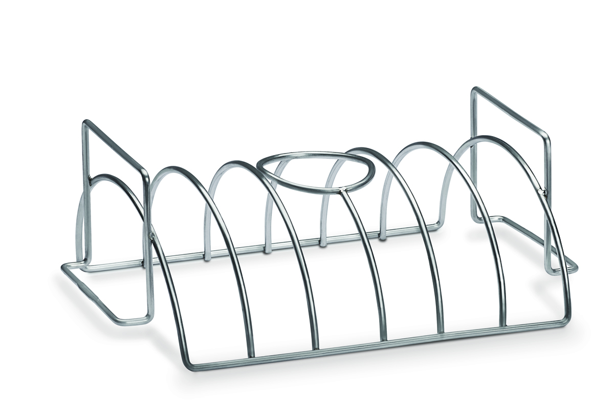 Le support pour rôtisserie 3 en 1 de Napoleon pour permettre de faire un rôti, des côtes levées ou un poulet à la bière.