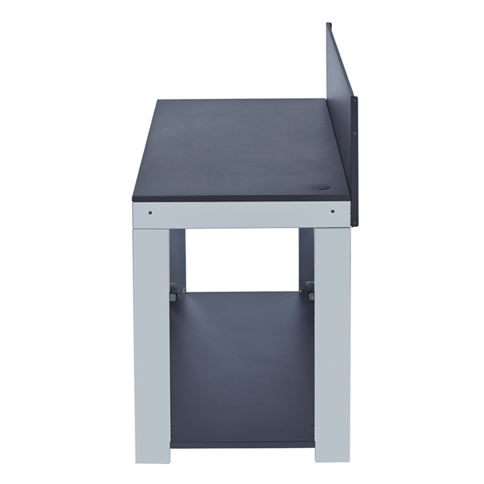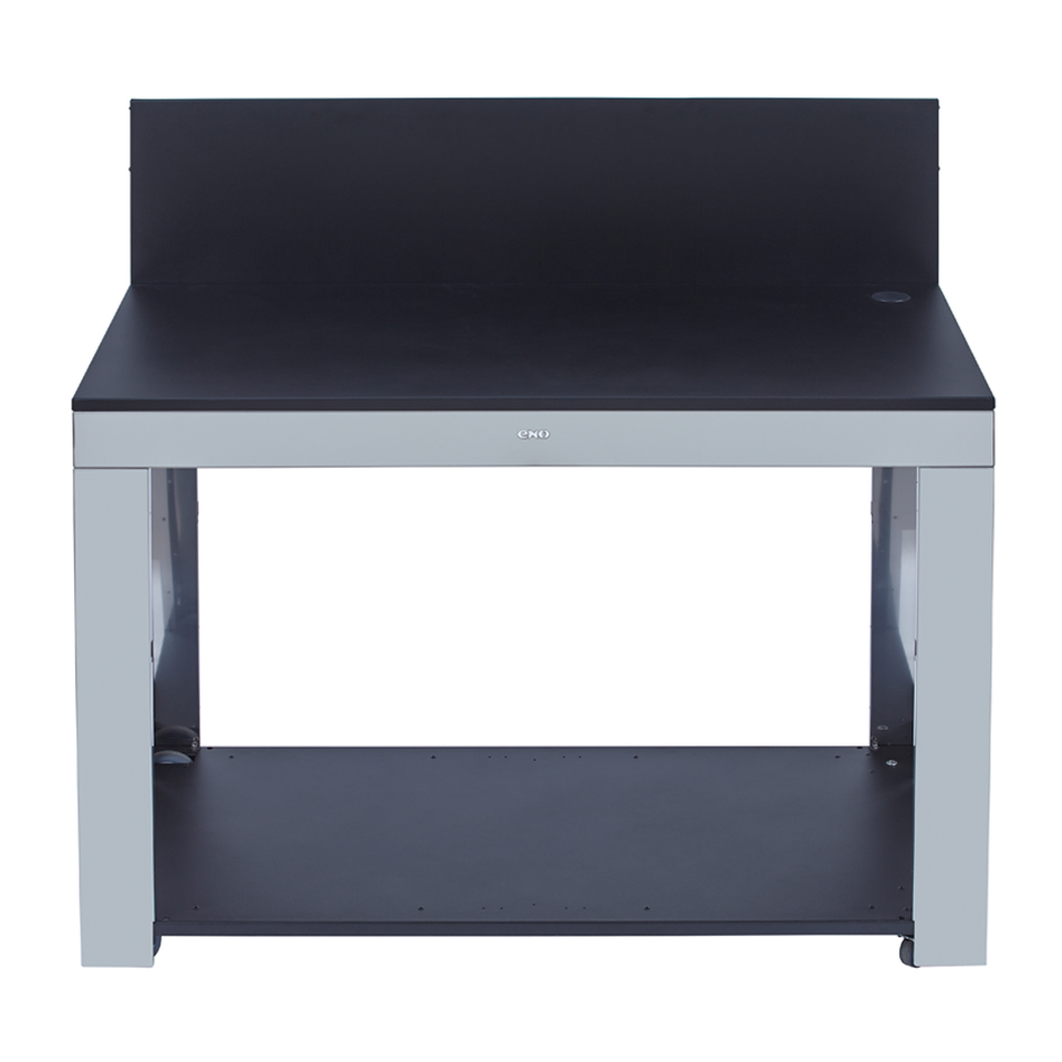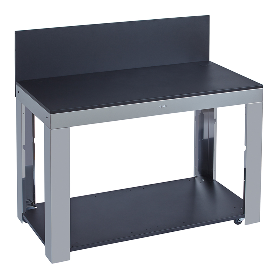 Structure en inox – Plateau acier galvanisé thermolaqué noir – Crédence haute – 4 roues dont 2 directionnelles – Étagère basse