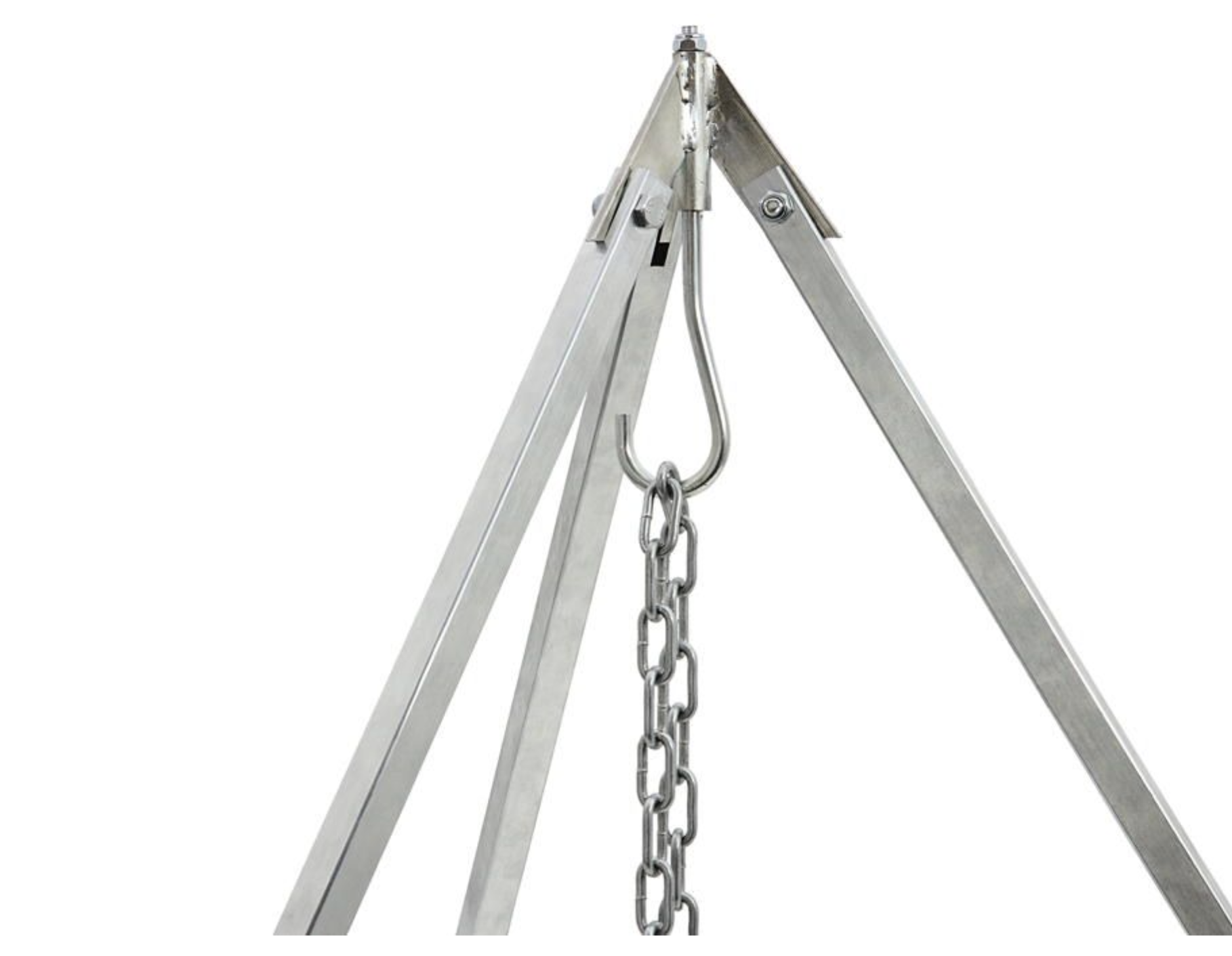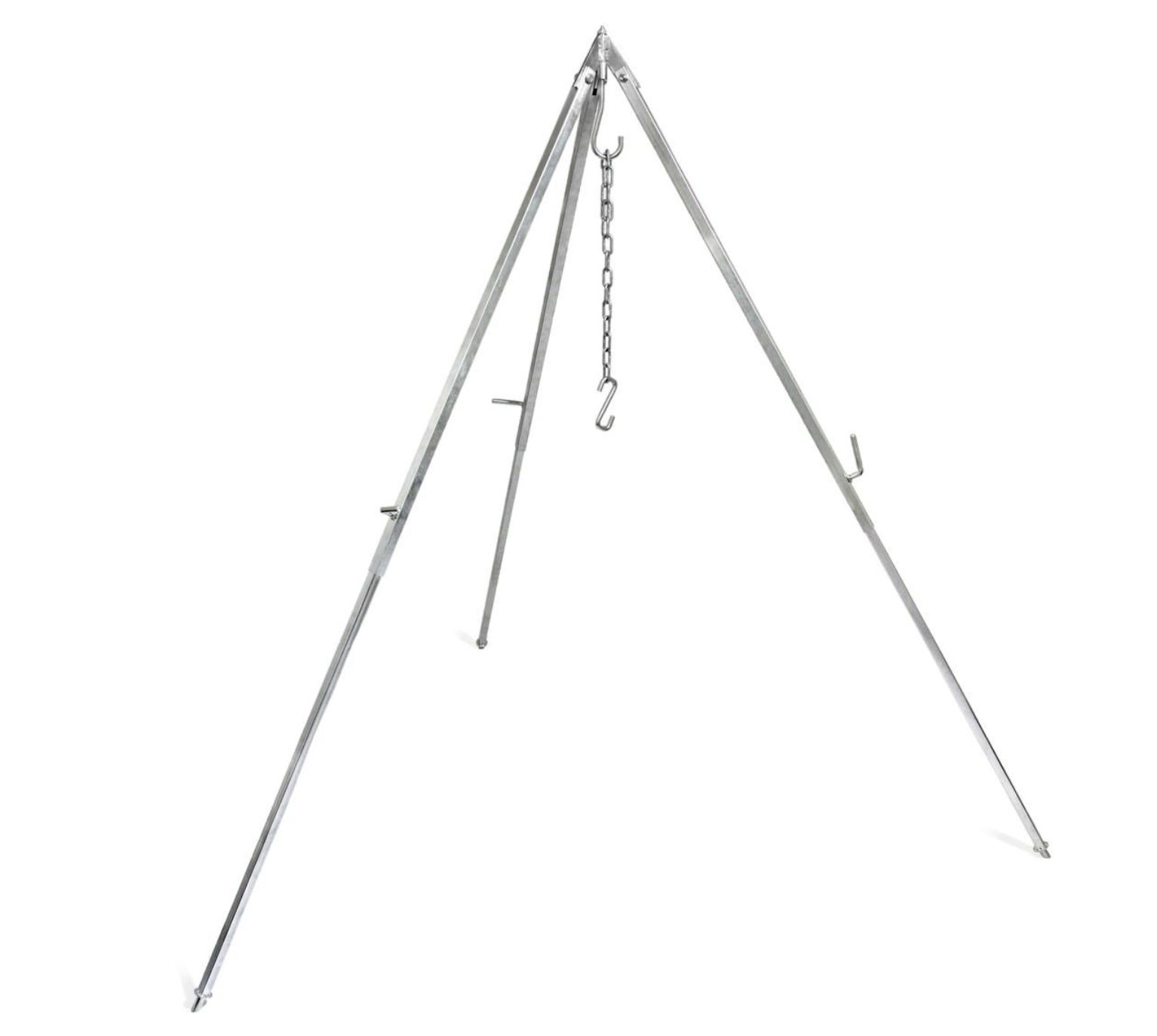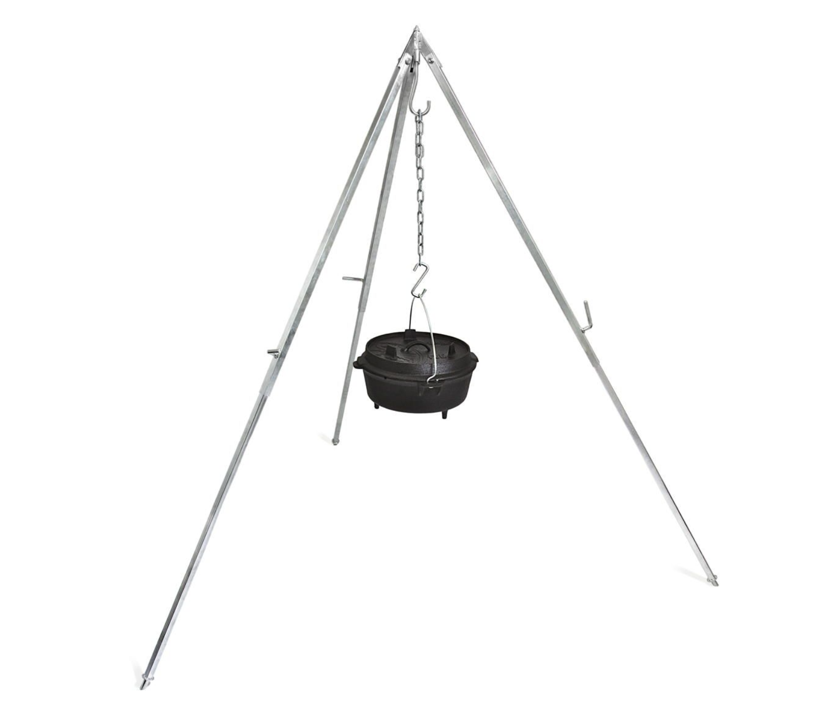 Le trépied de suspension Petromax permet de perfectionner la cuisine en plein air. On peut suspendre simplement et en toute sécurité au crochet un gril ou la marmite Petromax. Grâce à sa chaîne réglable en hauteur, la cuisine sur feu devient une expérience particulièrement agréable. Les extrémités biseautées assurent un maintien stable du trépied sur différents types de sols. Chaque pied est de plus réglable en hauteur et en continu afin d’équilibrer facilement le trépied lorsque la surface du sol est inégale.