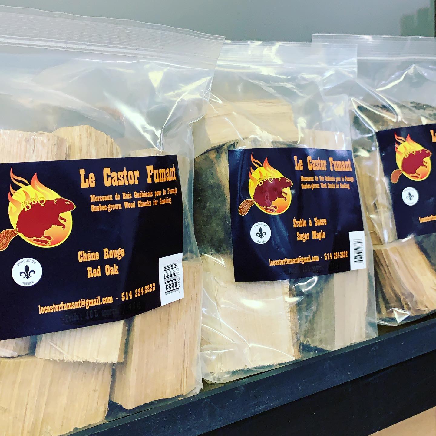 Sac de tronçons de bois de cerisier québécois pour le fumage du Castor Fumant. Entreprise québécoise.