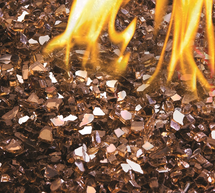 Vitres concassées de couleur ambre pour foyer électrique ou au gaz ainsi que table de feu extérieur