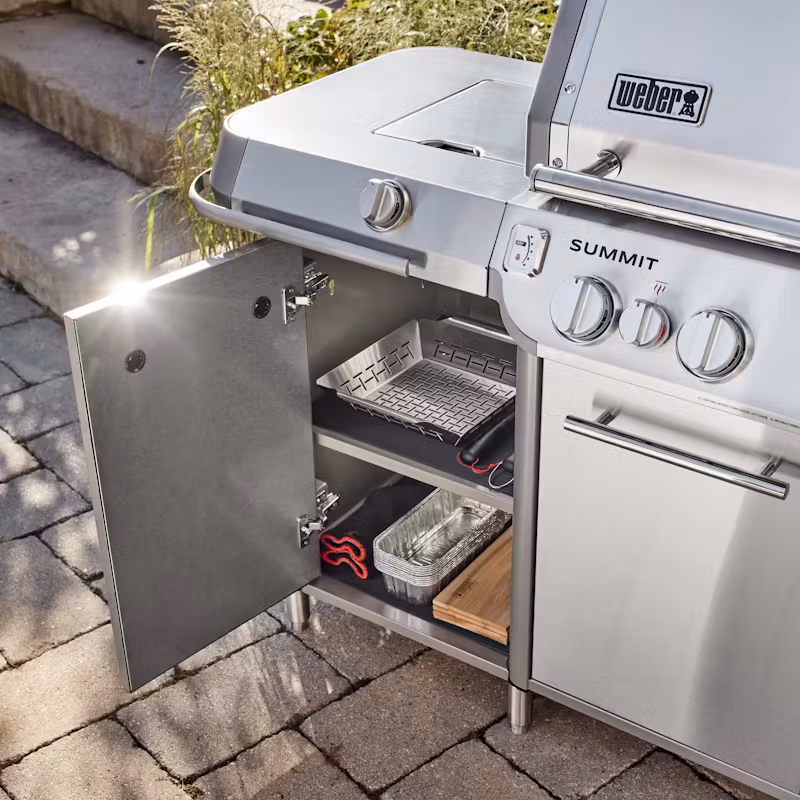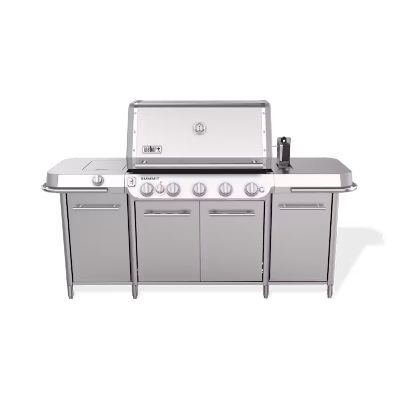 Passez au Centre de grillades Summit réinventé, le barbecue au gaz haut de gamme Weber avec deux grandes armoires de rangement et plus de fonctionnalités supérieures pour développer vos techniques de cuisson en plein air et recevoir vos convives en grand. Grillez des steaks comme au restaurant avec le nouveau grilloir à infrarouge qui diffuse une chaleur intense sur le dessus des aliments de manière à produire une croûte caramélisée uniforme qui emprisonne les saveurs. Allumez la boîte de fumage en acier inoxydable pour donner à vos aliments un goût fumé à feu doux et rompez avec la routine grâce à la rôtissoire intégrée. Ce barbecue est équipé de grilles de cuisson et de l’ensemble cadre et entretoise WEBER CRAFTED pour que vous puissiez transformer votre barbecue en plancha, four à pizza, wok et beaucoup plus avec des ustensiles sur mesure (vendus séparément). Sortez votre cuisine à l’extérieur et créez des plats délicieux qui rendront chaque rencontre mémorable.