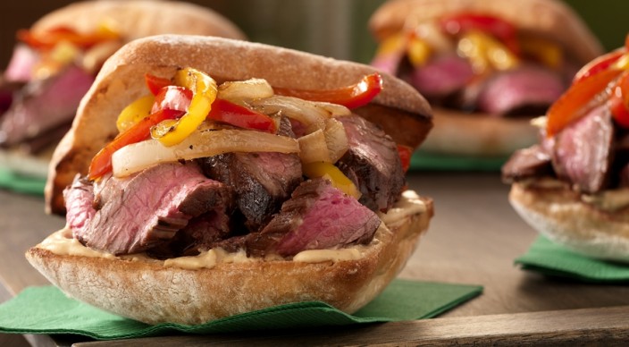 Hamburgers au fromage philly aux oignons, poivrons et provolone